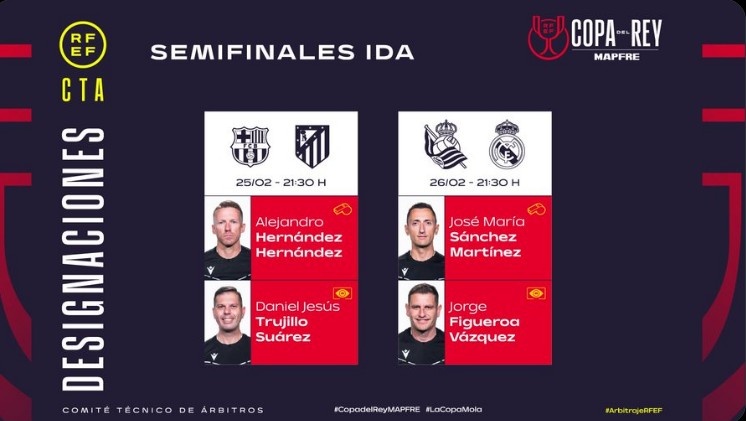 2025-02-24 21:00:28國王杯半決賽首回合裁判組公布:亞歷山大執(zhí)法巴薩vs馬競