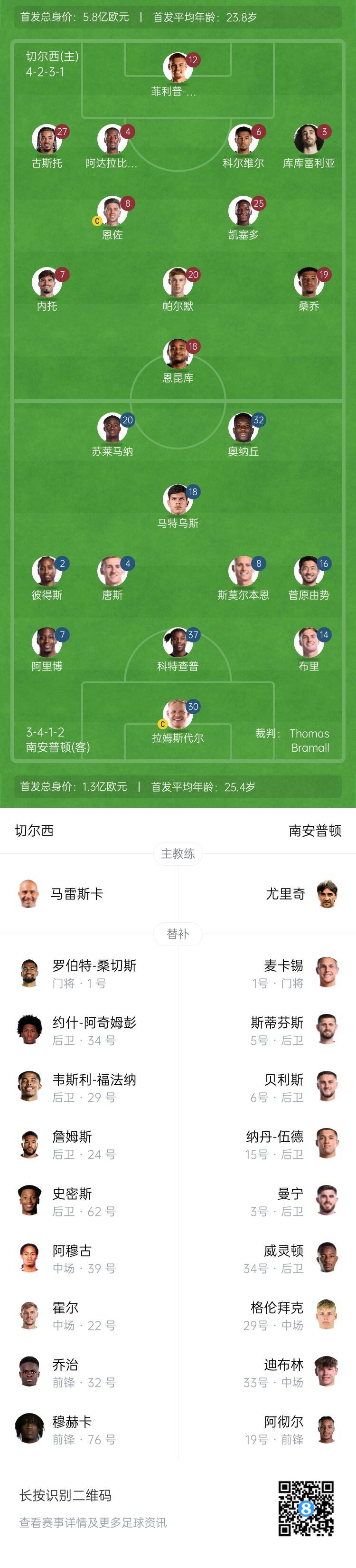2025-02-26 07:00:32切爾西vs南安普頓首發(fā):帕爾默、桑喬領(lǐng)銜 福法納復(fù)出替補