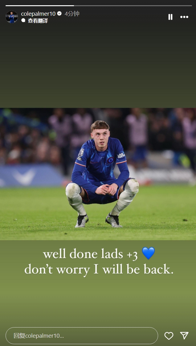 2025-02-26 14:01:49遭遇7場進球荒,帕爾默社媒曬照:不用擔心,我會回來的