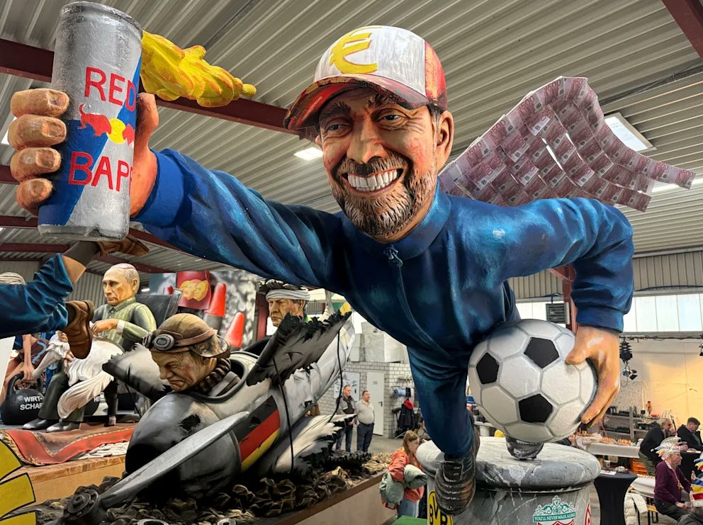 據(jù)報(bào)道,該彩車上是前美因茨球員和教練克洛普的身影,他的翅膀是用鈔票做成的,手里拿著一罐紅牛標(biāo)志性的能量飲料和一個(gè)足球。彩車側(cè)面還寫道:“對(duì)于克洛普來說,他不再關(guān)心那些曾經(jīng)很重要的價(jià)值觀。由于紅牛用大量金錢誘惑他,他現(xiàn)在正從自己的寶座上跌落下來。”