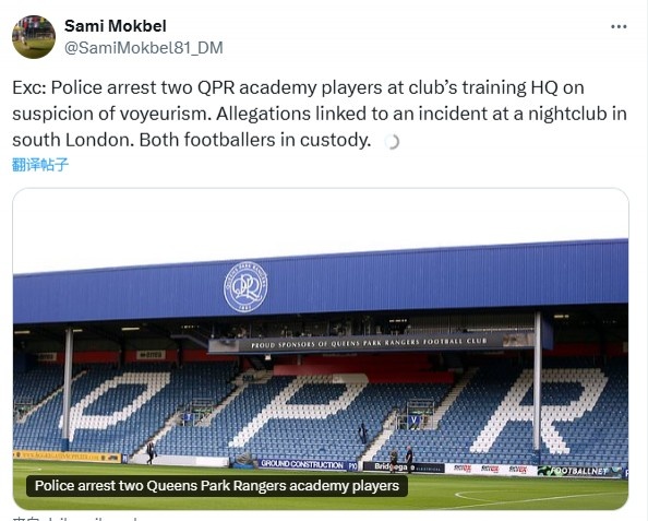2025-02-28 14:00:05郵報(bào):英冠QPR兩名球員訓(xùn)練時(shí)被警方帶走,涉嫌偷窺罪