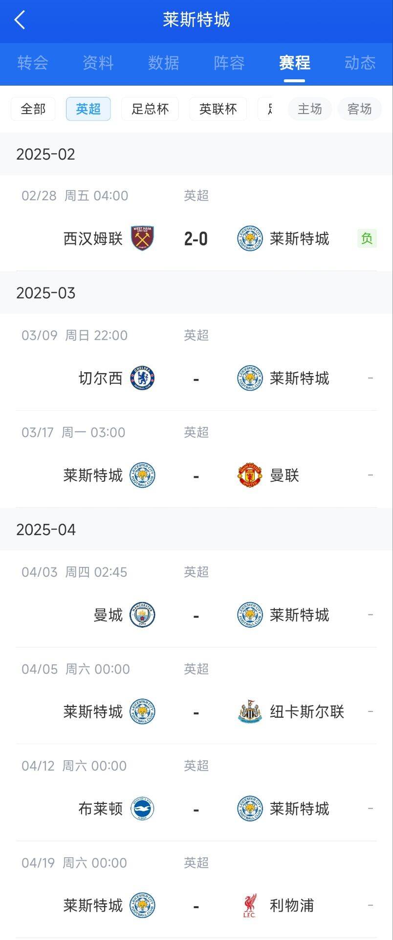 現(xiàn)在的萊斯特城排在英超第19位,只高于幾乎鎖定降級(jí)的南安普頓。而萊斯特城的苦難還沒(méi)有結(jié)束,他們將在接下來(lái)的6場(chǎng)比賽,對(duì)陣切爾西(5)、曼聯(lián)(14)、曼城(4)、紐卡(6)、布萊頓(8)、利物浦(1)……這賽程堪稱(chēng)魔鬼,僅有曼聯(lián)是下半?yún)^(qū)的隊(duì)伍。