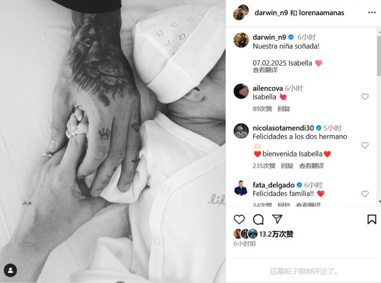 2025-02-28 14:00:29恭喜!努涅斯社媒曬照,和女友的第2個(gè)孩子在2月初出生