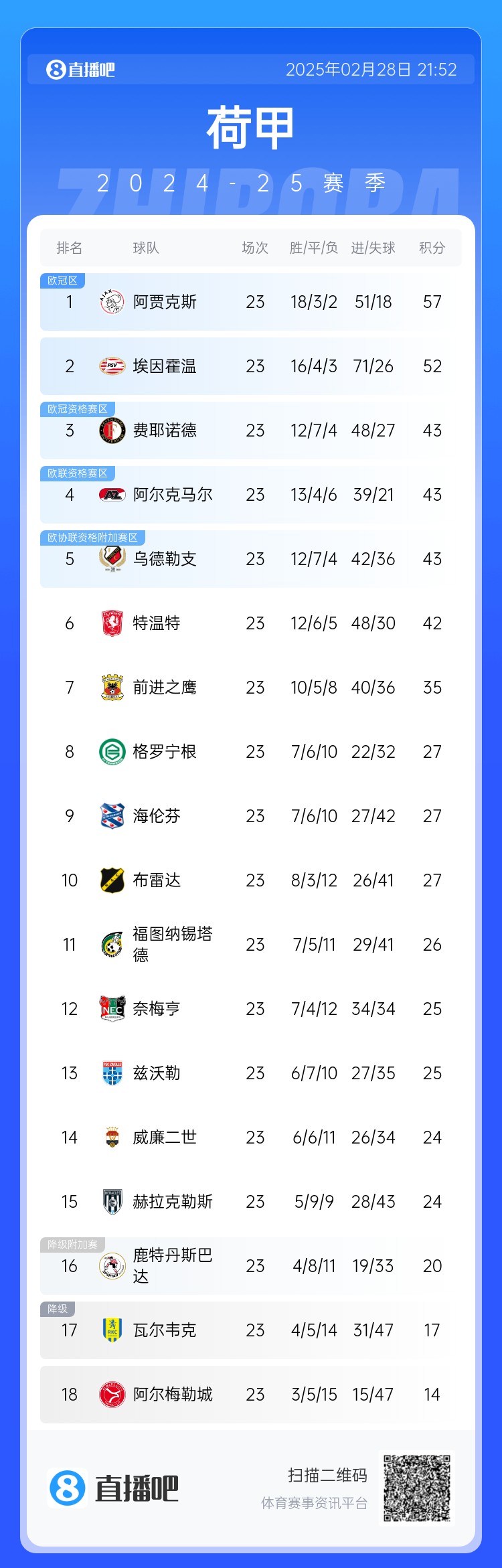2025-03-01 00:01:20王者歸來!阿賈克斯豪取荷甲8連勝&領(lǐng)先第二5分,上賽季一度墊底