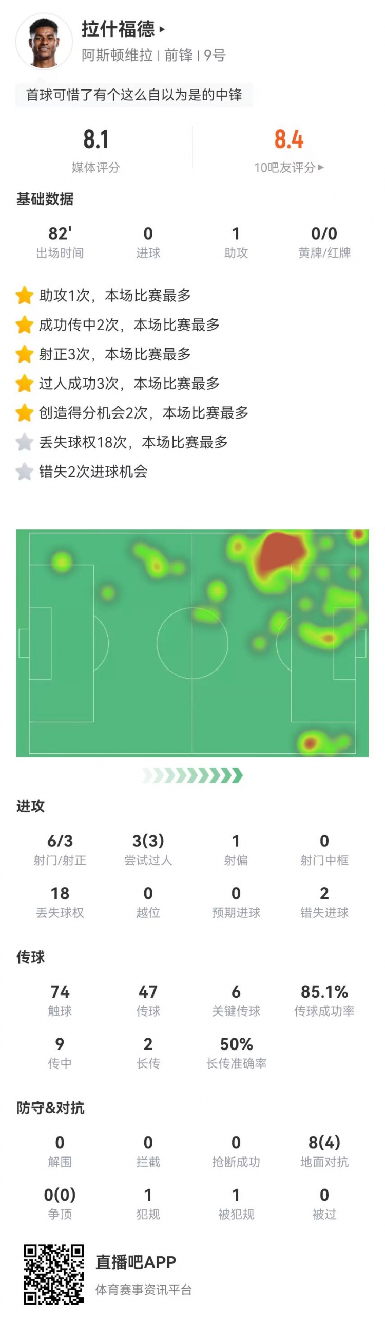 2025-03-01 07:00:08拉什福德本場(chǎng)1助攻+6關(guān)鍵傳球2造良機(jī) 6射3正2失良機(jī) 3過(guò)人均成功
