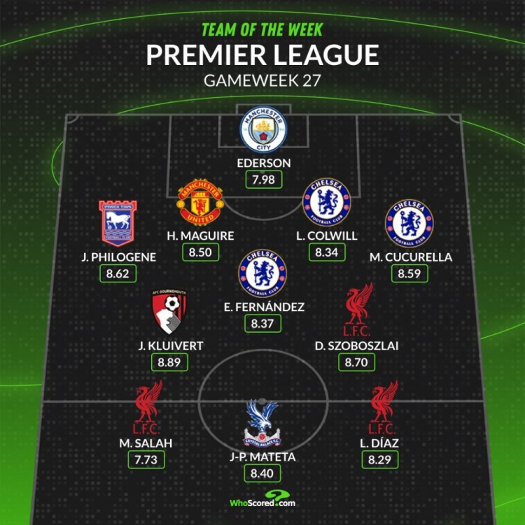 2025-03-01 07:00:25whoscored本輪英超最佳陣:恩佐&索博領(lǐng)銜,埃德森&馬奎爾在列