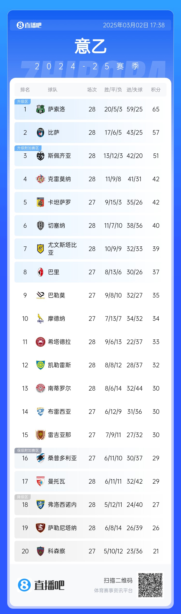 2025-03-02 21:00:54薩索洛要回來了——本輪意乙1-0擊敗第二比薩,領(lǐng)先第三14分