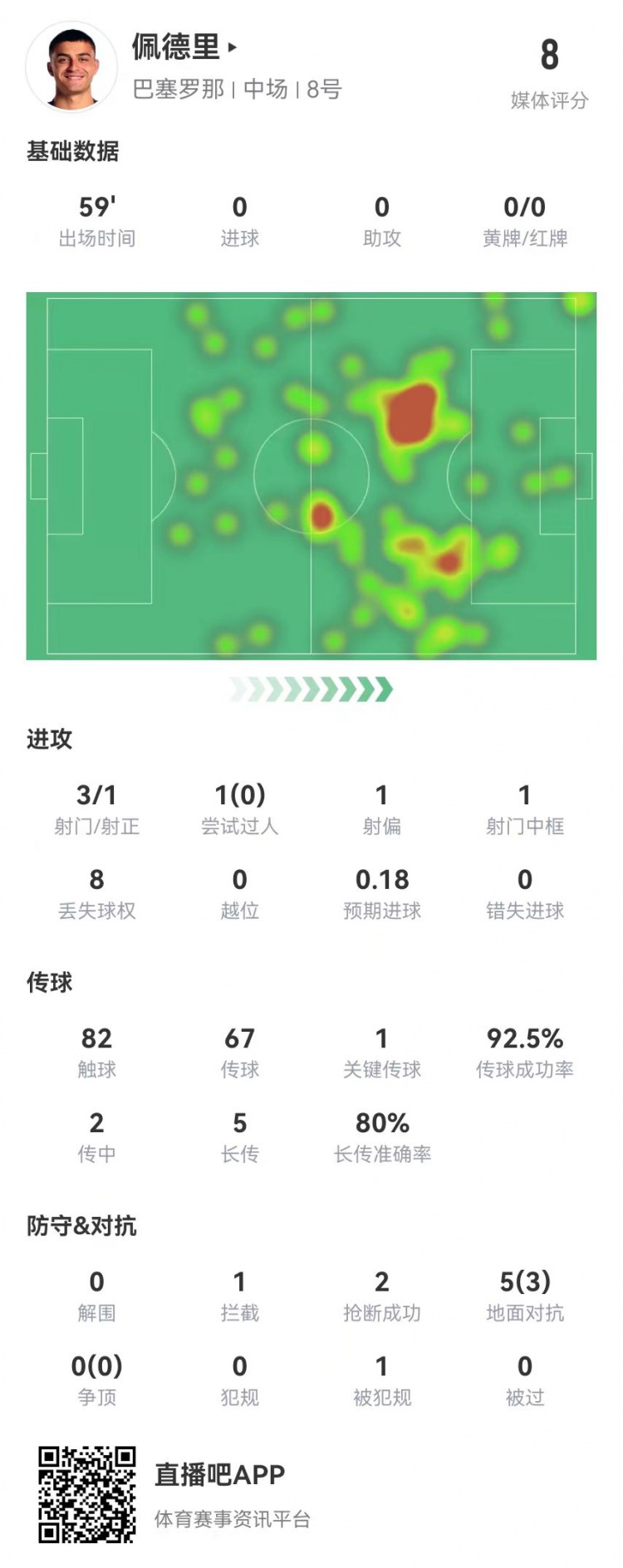 2025-03-03 07:00:40佩德里本場3射1中框 5長傳4成功 1關鍵傳球+2搶斷 獲評8.0分