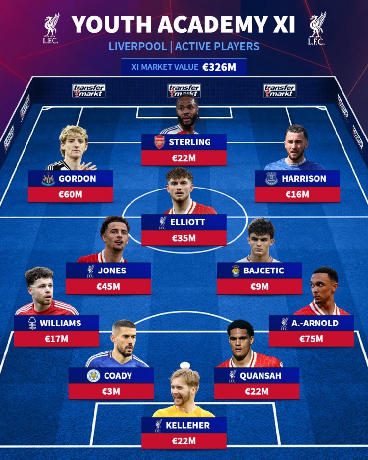 利物浦青訓(xùn)出品球員最佳陣↓(括號內(nèi)為球員目前效力球隊)