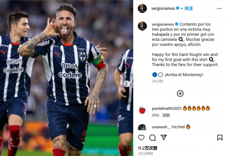 2025-03-03 14:00:21攻入蒙特雷生涯首球,拉莫斯:為艱苦的勝利和首球感到開(kāi)心