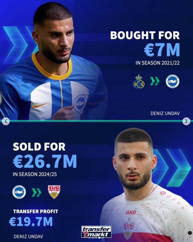2025-03-03 14:01:20德轉(zhuǎn)列布萊頓近年5筆低買高賣,凈賺超2億歐:凱塞多&庫庫在列