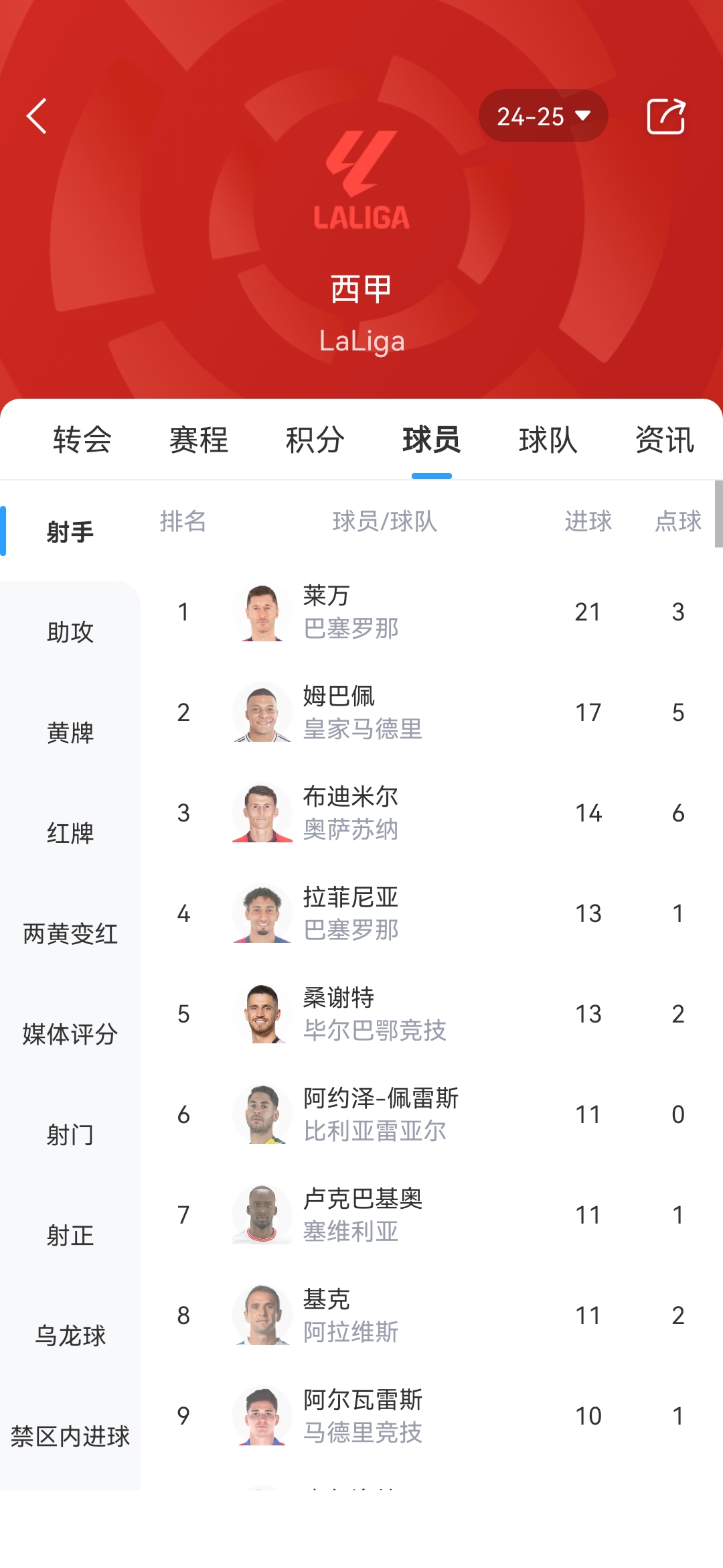 2025-03-03 21:02:54曇花億現(xiàn)!歐洲金靴:薩拉赫25球領(lǐng)跑,雷特吉&萊萬&凱恩21球
