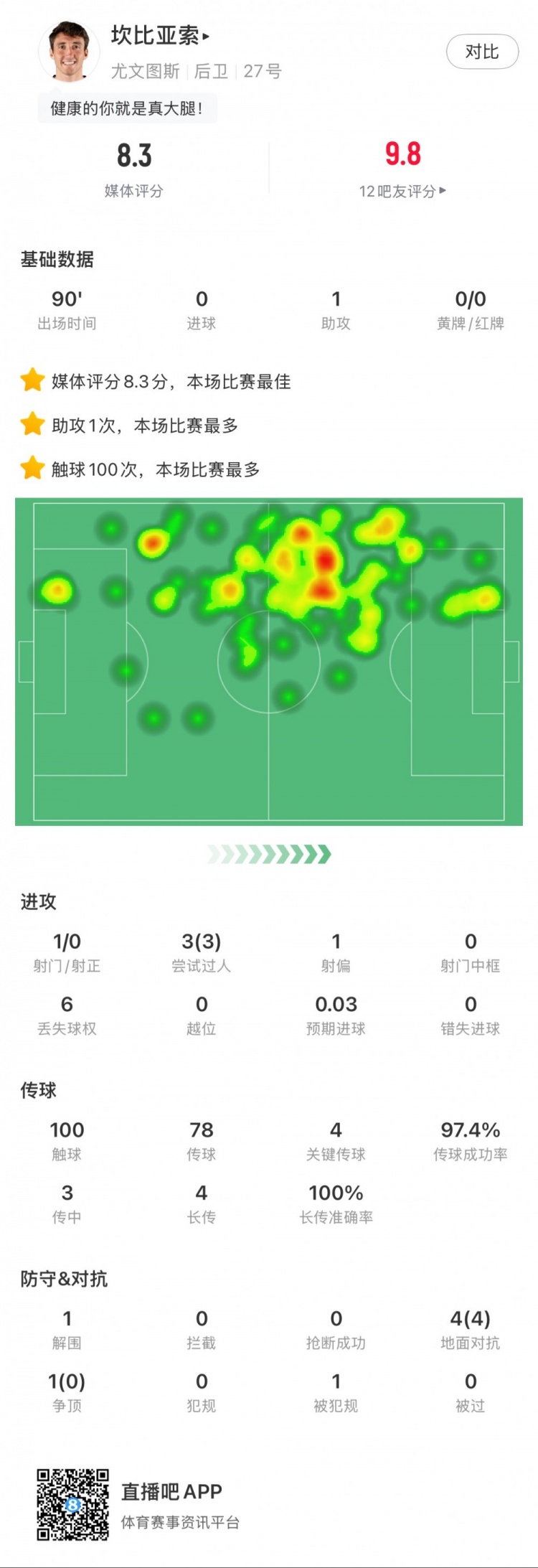 2025-03-04 07:00:11坎比亞索本場數(shù)據(jù):1次助攻,4次關(guān)鍵傳球,3次成功過人