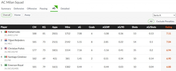 (賽季預(yù)計(jì)破門數(shù)的表現(xiàn),及個(gè)人成績。對(duì)比之下國米的預(yù)計(jì)進(jìn)球數(shù)比米蘭多十個(gè))