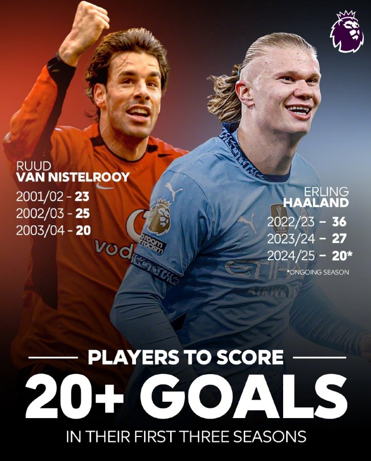 2025-03-04 21:01:19英超歷史只有兩名球員生涯前三賽季進(jìn)球20+:分別是范尼和哈蘭德