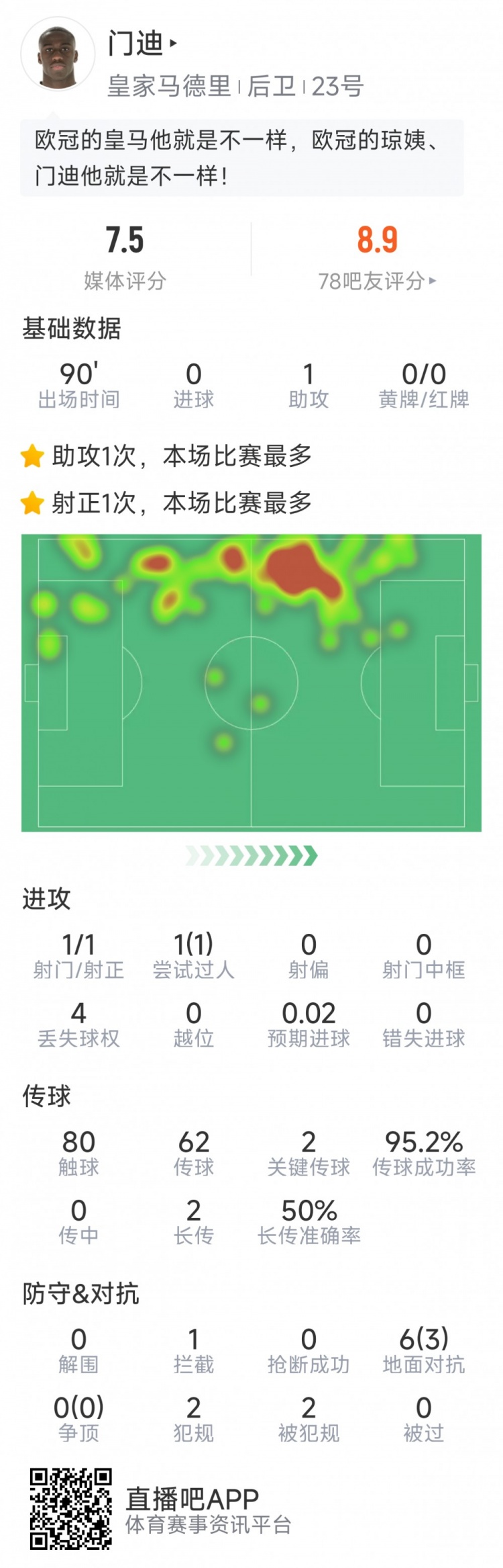 2025-03-05 07:00:42門迪本場(chǎng)數(shù)據(jù):1次助攻,1次射門,2次關(guān)鍵傳球,評(píng)分7.5分