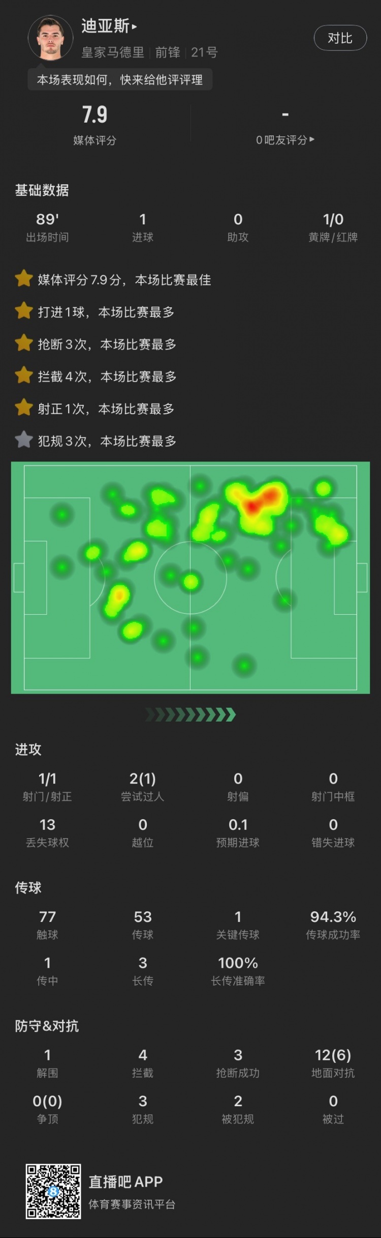 2025-03-05 07:00:55迪亞斯本場:1次射門進(jìn)1球,貢獻(xiàn)4攔截3搶斷,評分7.9全場最高