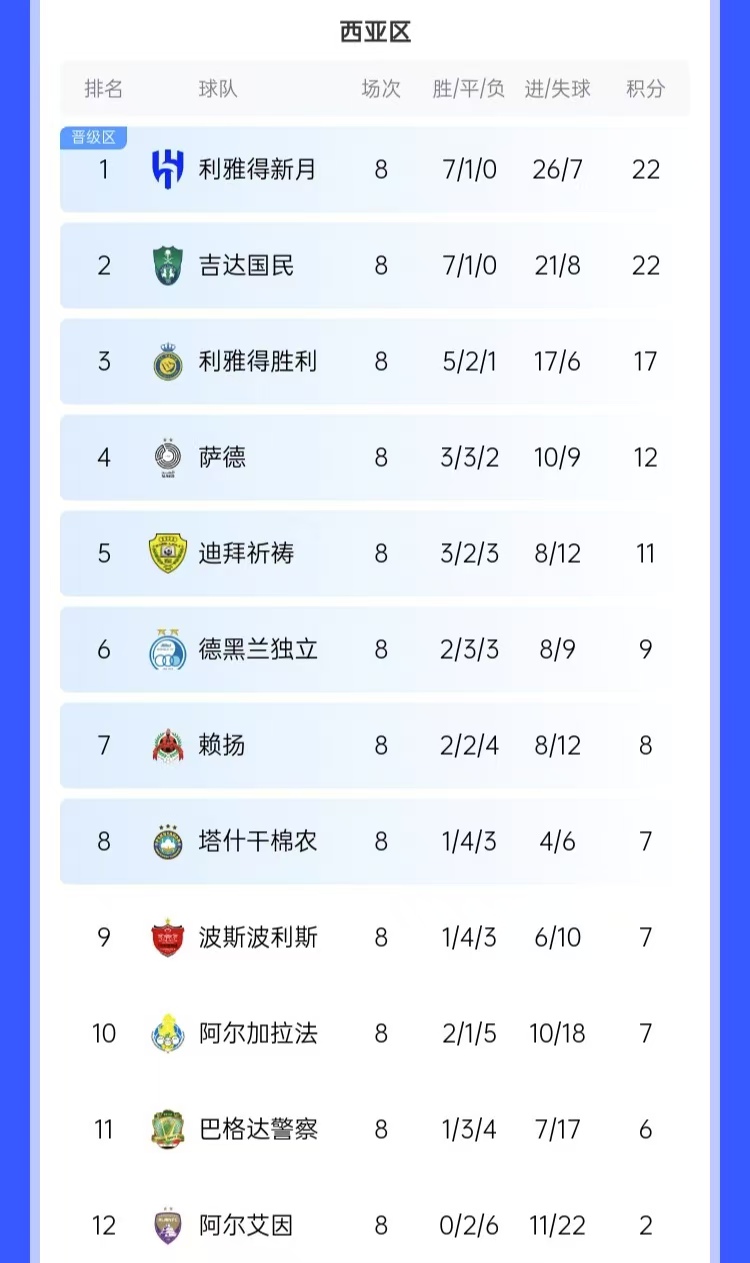 新月作為聯(lián)賽階段的巨無(wú)霸,8輪7勝1平未嘗敗績(jī),狂轟26球僅丟7球。本場(chǎng)對(duì)陣西亞區(qū)以第8名的墊底戰(zhàn)績(jī)晉級(jí)的塔什干,本應(yīng)是毫無(wú)懸念的比賽,但是新月無(wú)奈客場(chǎng)告負(fù)。