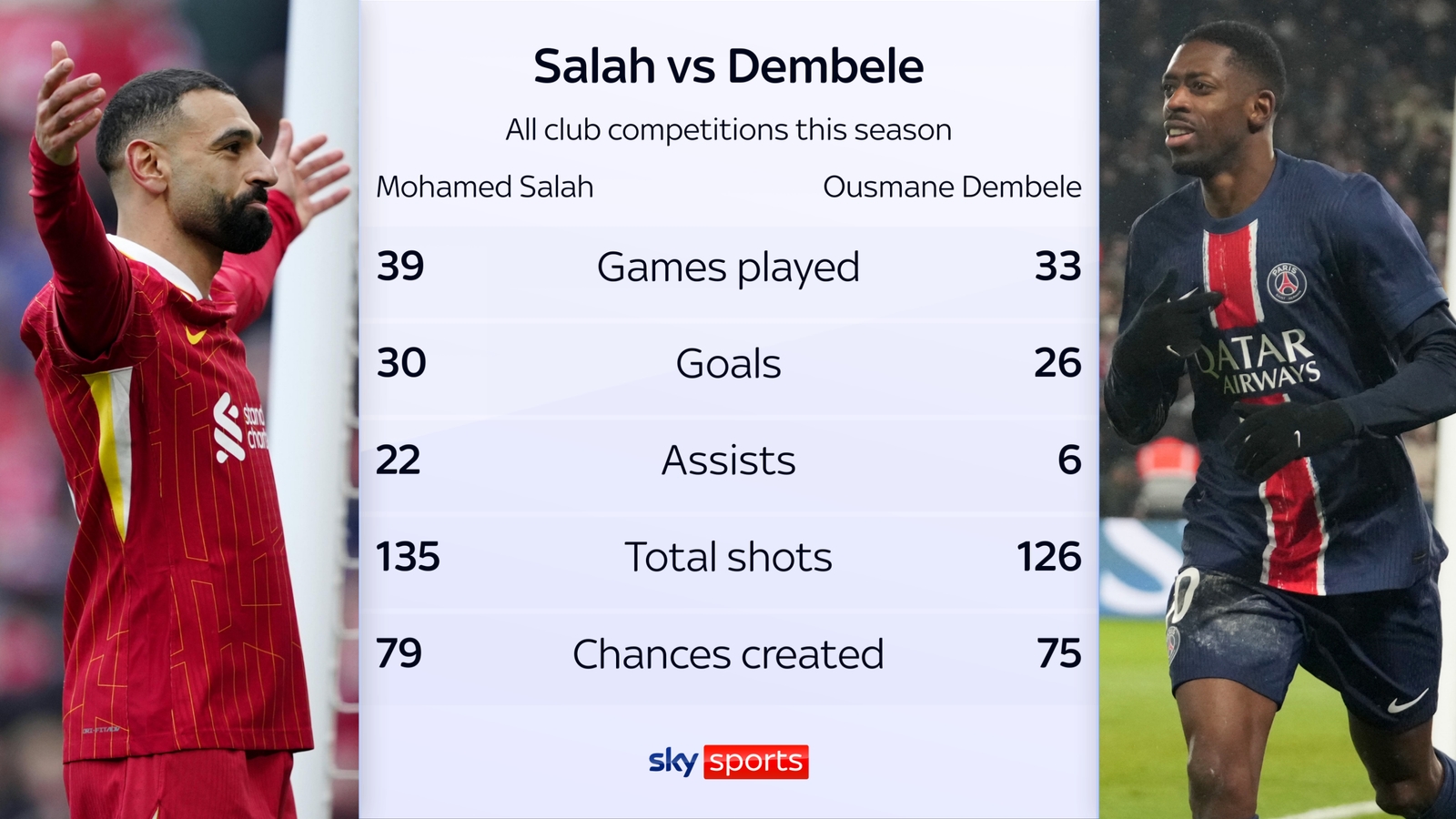 薩拉赫與登貝萊本賽季數(shù)據對比