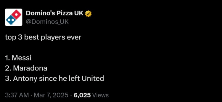 2025-03-07 07:00:24達美樂披薩吹圓神:歷史前三是梅西、馬拉多納、離開曼聯(lián)的安東尼