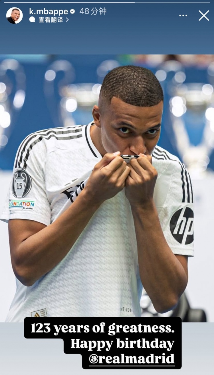 2025-03-07 07:00:27姆巴佩祝賀皇馬成立123周年:123年的偉大歷史,皇馬生日快樂