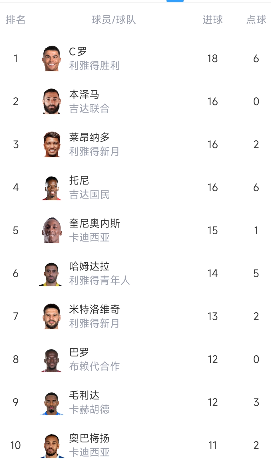 2025-03-08 07:00:19沙特聯(lián)射手榜:C羅18球領(lǐng)跑,本澤馬16球第二、奧巴梅揚(yáng)11球第十