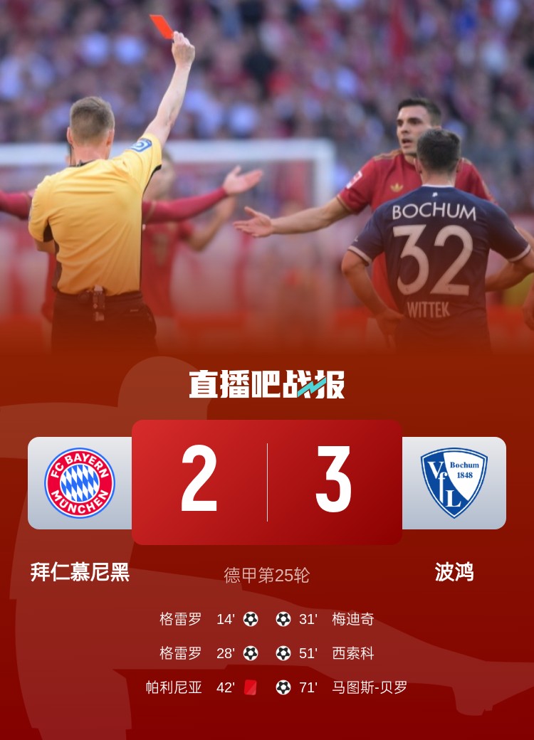 2025-03-09 07:01:48在德甲落后拜仁2球但最終逆轉(zhuǎn)獲勝!波鴻是歷史第4隊