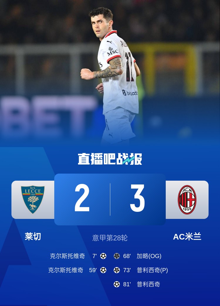 2025-03-09 01:14:052025年03月09日 03月09日 意甲第28輪 萊切vsAC米蘭 進球視頻