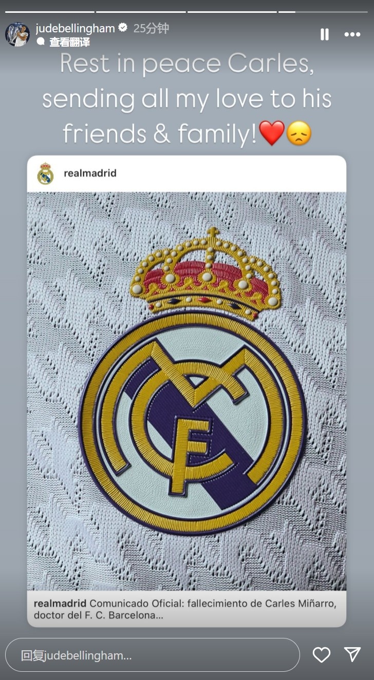2025-03-09 21:01:59貝林悼念巴薩隊(duì)醫(yī):R.I.P.卡萊斯,向他的家人朋友致以我所有的愛