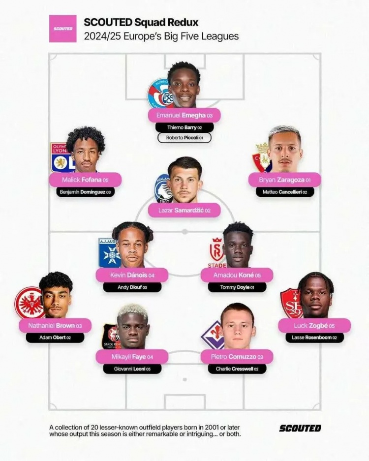 Scouted評(píng)選五大聯(lián)賽值得關(guān)注的U23球員