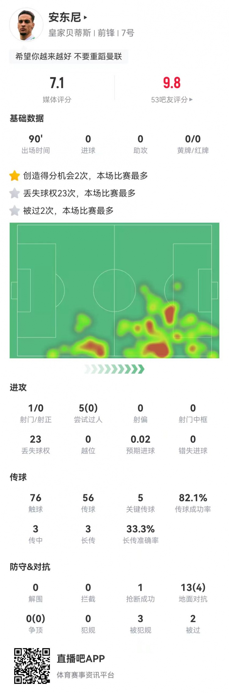 2025-03-10 07:00:27安東尼本場5關(guān)鍵傳球+2造良機(jī)+3造犯規(guī) 5過人0成功+23丟失球權(quán)