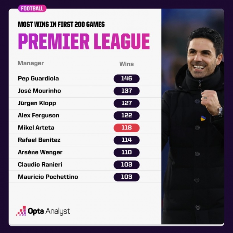 2025-03-10 07:00:37英超主帥前200場勝率榜前五:瓜帥、穆帥、渣叔、弗爵、塔帥