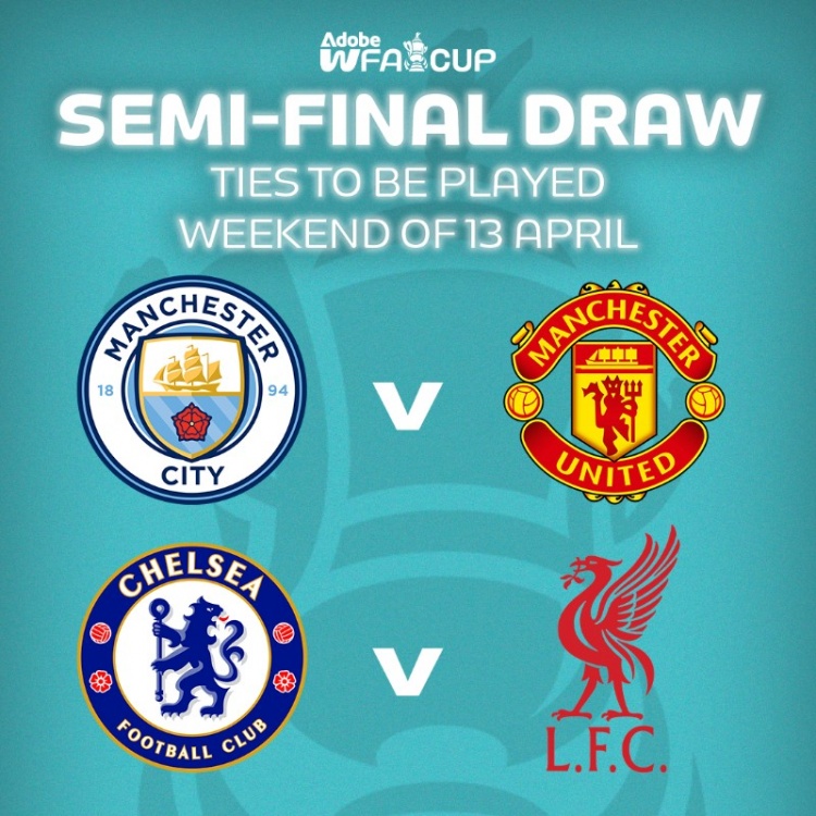 2025-03-10 14:00:27女足足總杯半決賽對(duì)陣:曼城vs曼聯(lián),切爾西vs利物浦