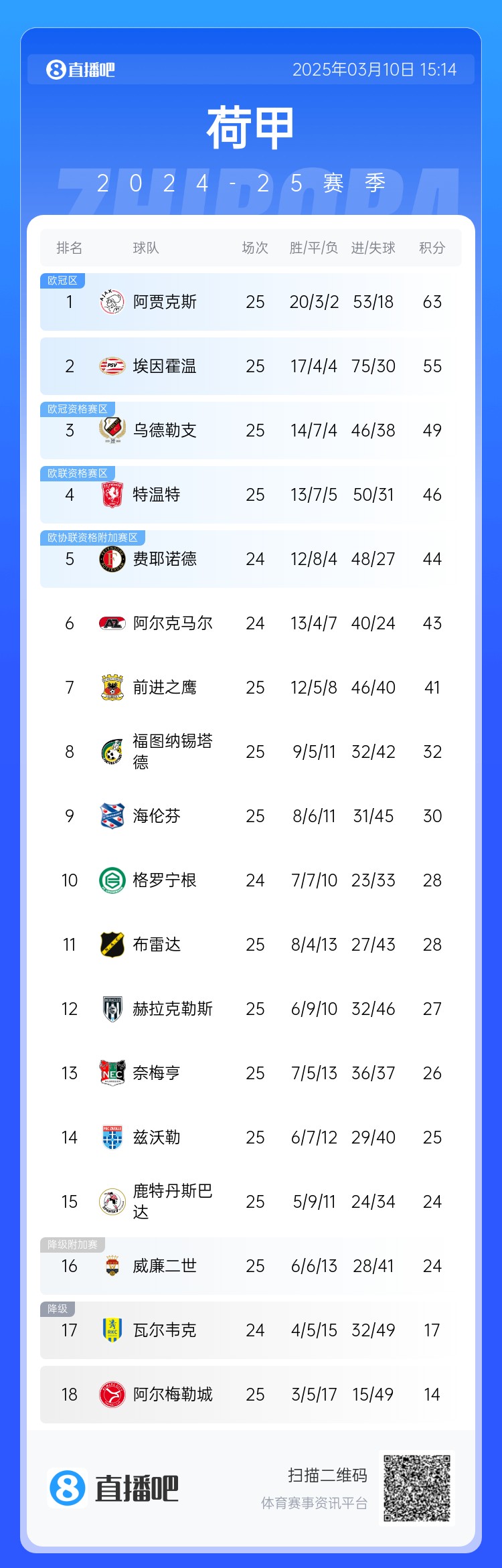 2025-03-10 21:07:14賈府回來了?35歲少帥率領阿賈克斯豪取荷甲10連勝,剩9輪8分領跑