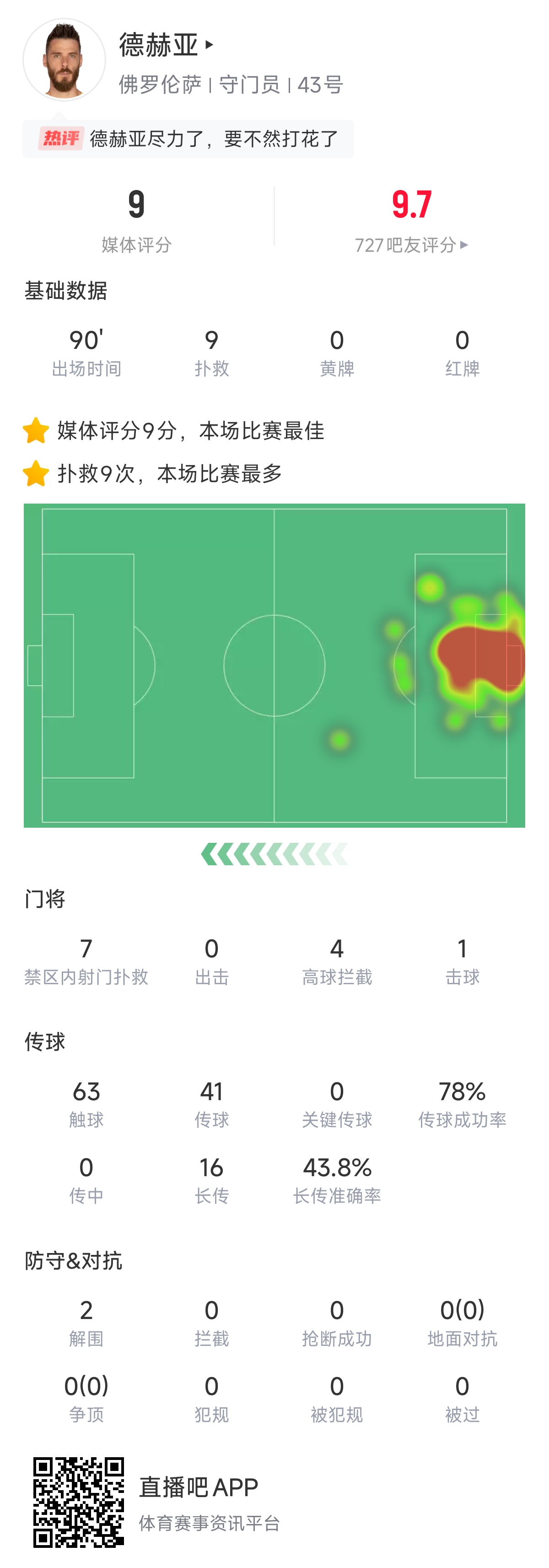 2025-03-10 21:07:29你撲你也麻!德赫亞被轟19腳僅丟2球,貢獻9撲救4攔截2解圍1擊球
