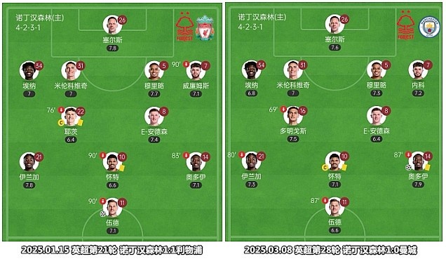 諾丁漢森林的首發(fā)陣容變化幅度很小,努諾-桑托會(huì)充分使用換人名額來(lái)為主力球員提供休息機(jī)會(huì)。