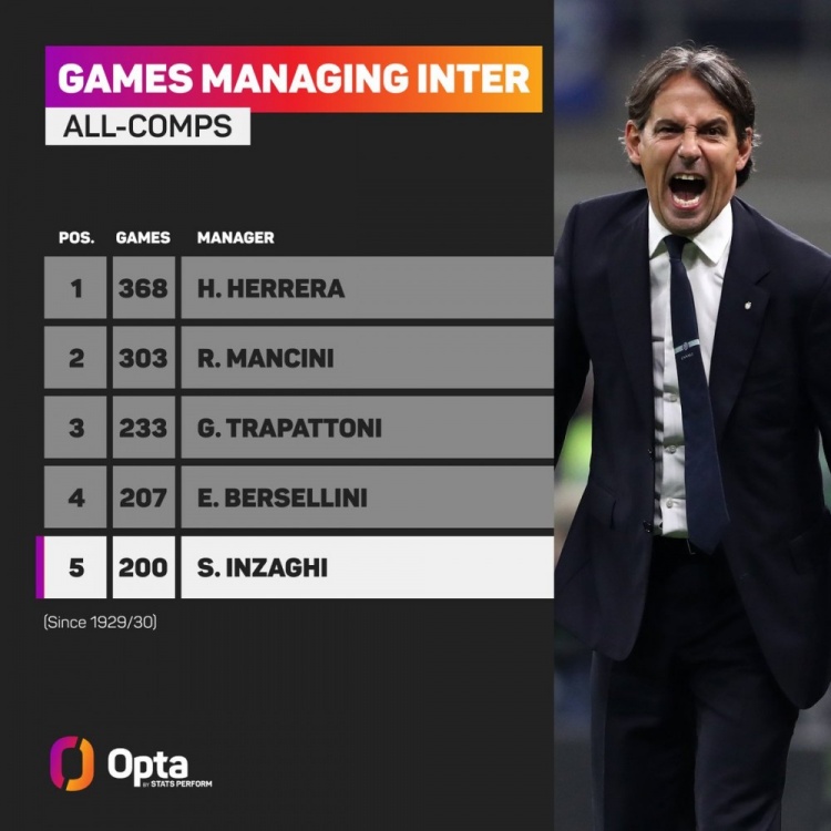 2025-03-12 07:00:59小因扎吉達(dá)成執(zhí)教國米各項(xiàng)賽事200場里程碑,是隊(duì)史第5人