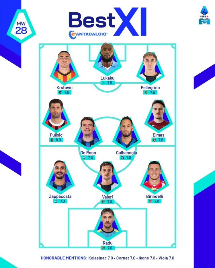 2025-03-12 07:01:30意甲官方本輪最佳陣:普利西奇、恰20領(lǐng)銜,盧卡庫(kù)、拉杜在列