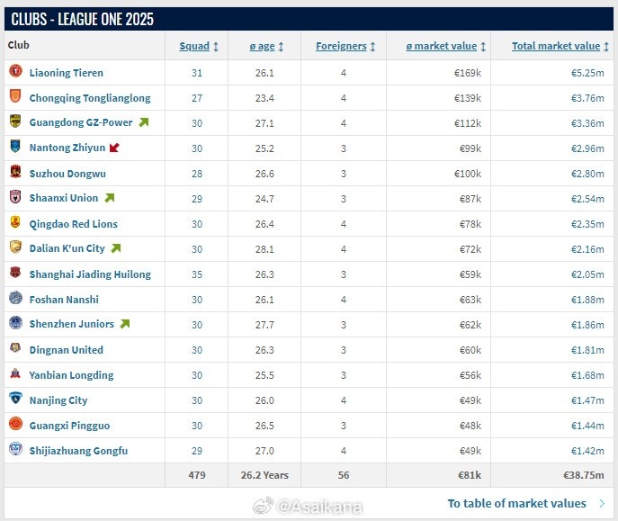 2025-03-12 14:00:59遼寧鐵人總身價(jià)525萬(wàn)歐元,為新賽季中甲最高