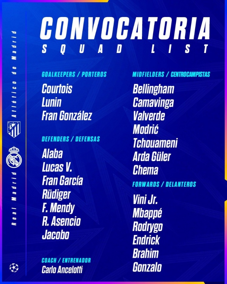 2025-03-12 21:00:12皇馬客戰(zhàn)馬競大名單:庫爾圖瓦&呂迪格回歸,姆巴佩領(lǐng)銜鋒線