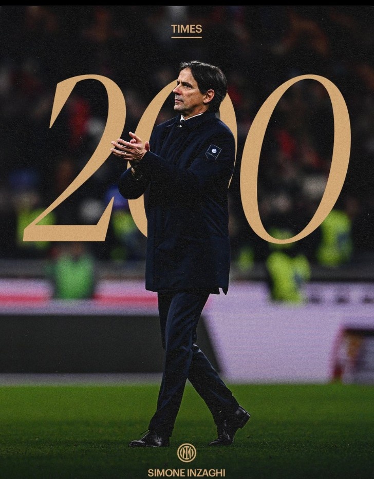 2025-03-12 21:01:26小因扎吉迎執(zhí)教國米200場里程碑,球隊官方曬海報紀念