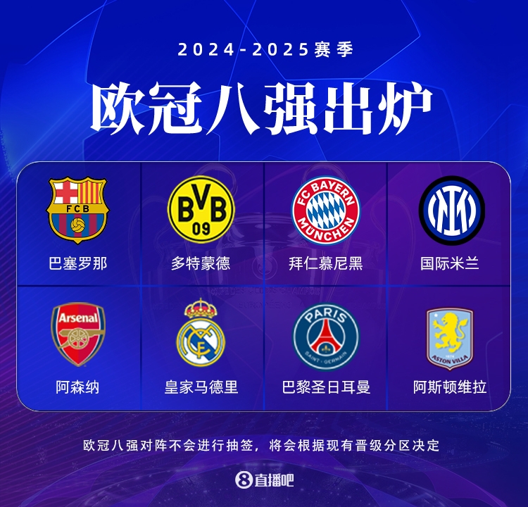 2025-03-13 07:00:14??歐冠8強(qiáng)對陣:槍手vs皇馬|拜仁vs國米|巴薩vs多特|巴黎vs維拉
