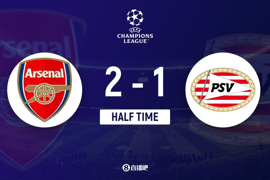 上半場傷停補時1分鐘,半場結(jié)束,阿森納暫2-1埃因霍溫。