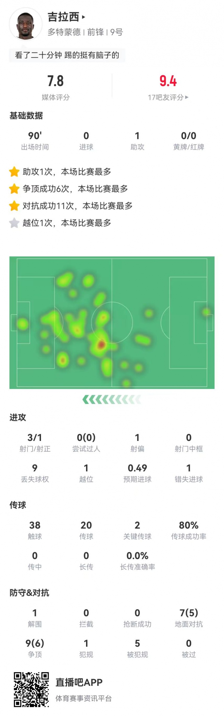 2025-03-13 07:00:58吉拉西本場1造點1助攻2關(guān)鍵傳球 16對抗11成功+5造犯規(guī) 獲評7.8分