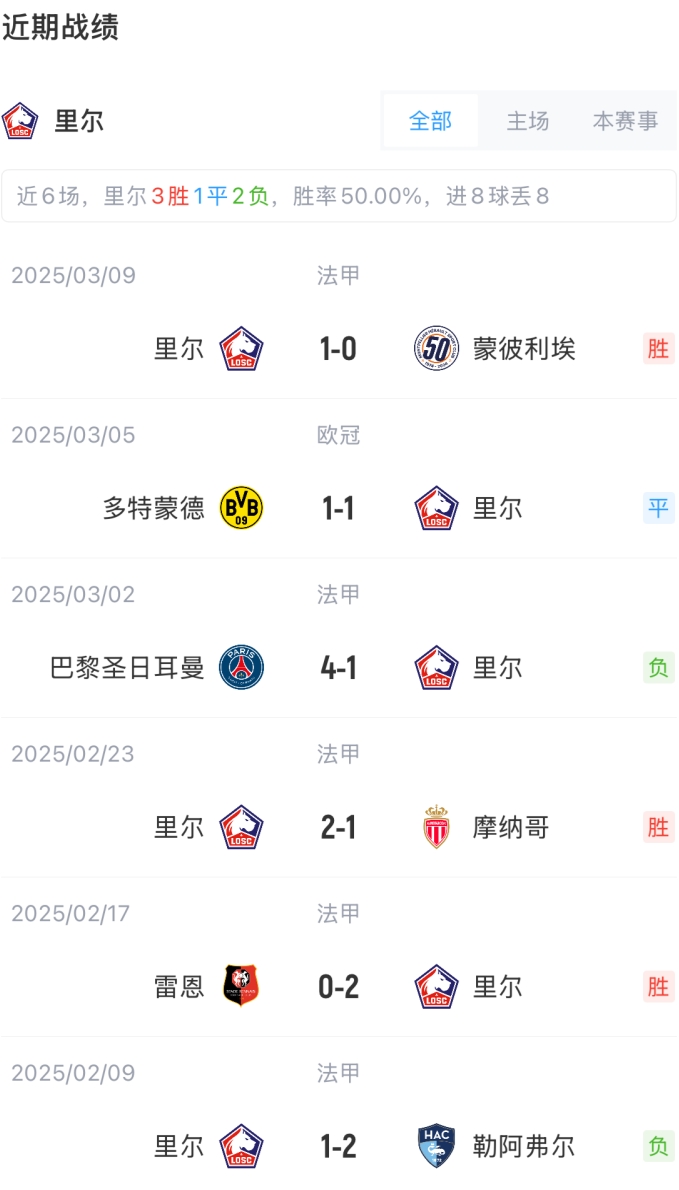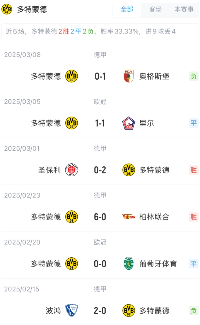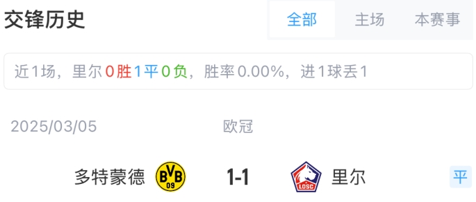 2025-03-13 07:01:20多特歷史25戰(zhàn)法甲球隊11勝7平7負(fù),里爾12戰(zhàn)德甲球隊2勝5平5負(fù)