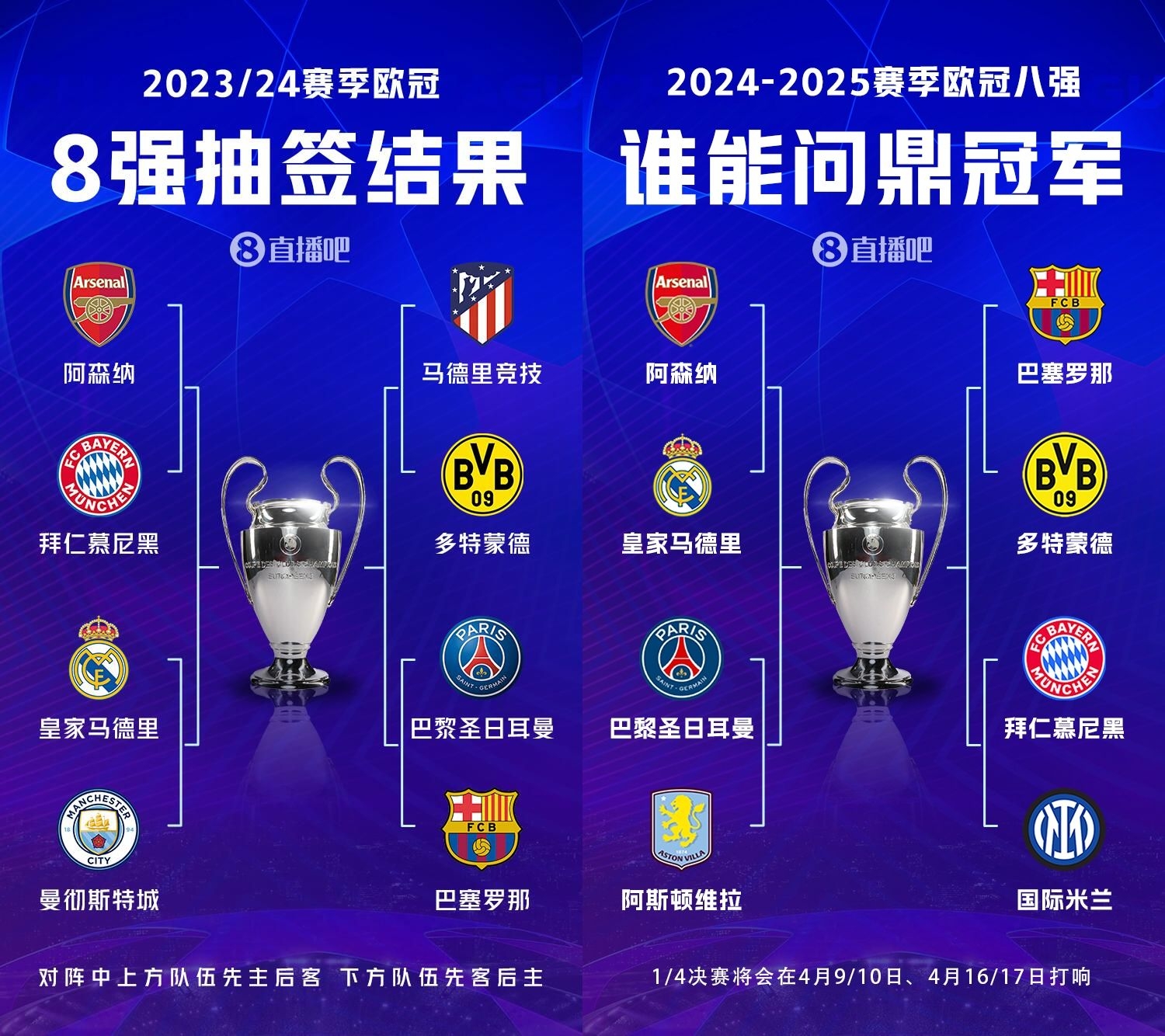 2025-03-13 14:00:16僅換2席!上賽季8強(qiáng)PK本賽季:6隊(duì)一樣,僅國(guó)米維拉換掉曼城馬競(jìng)