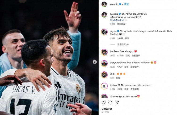 2025-03-13 14:01:59勞爾-阿森西奧社媒慶祝晉級八強(qiáng):皇馬球迷們,這是獻(xiàn)給你們的