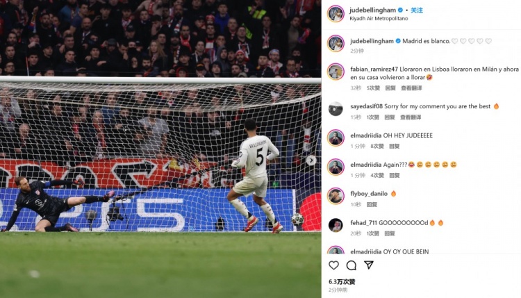 2025-03-13 14:02:04同城德比晉級(jí)!貝林厄姆曬點(diǎn)球破門照:馬德里是白色的!