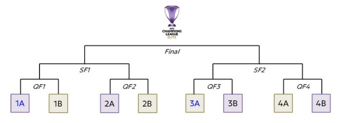 利雅得新月落位1A,其余三支西亞球隊(duì)落位2A、3B、4B;
