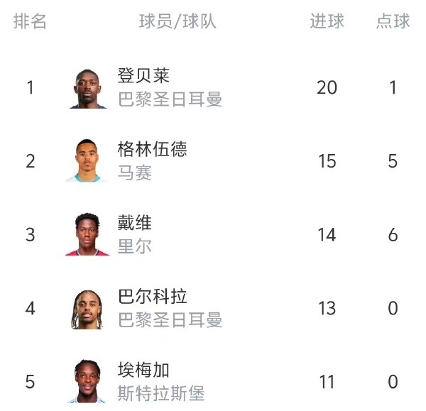 從統(tǒng)計(jì)數(shù)據(jù)上可以看到,登貝萊在法甲射手榜上已經(jīng)建立起5球的領(lǐng)先優(yōu)勢(shì)。更不要說(shuō)他20個(gè)法甲聯(lián)賽進(jìn)球里,只有1次點(diǎn)球破門。